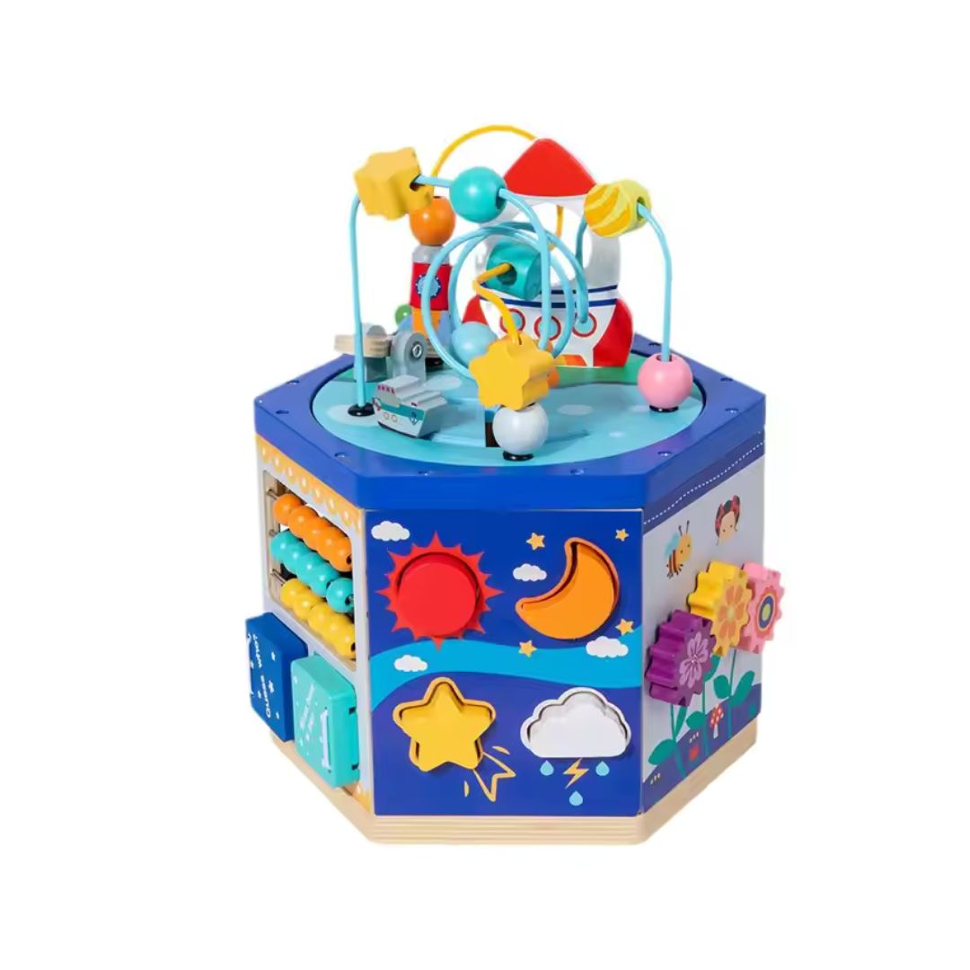 Acest cub educativ multifuncțional din lemn este o jucărie interactivă și colorată, concepută pentru a stimula dezvoltarea timpurie a copiilor prin joacă educativă. Cu un design atractiv și funcționalități multiple, cubul este perfect pentru copiii cu vârsta între 1 și 3 ani.