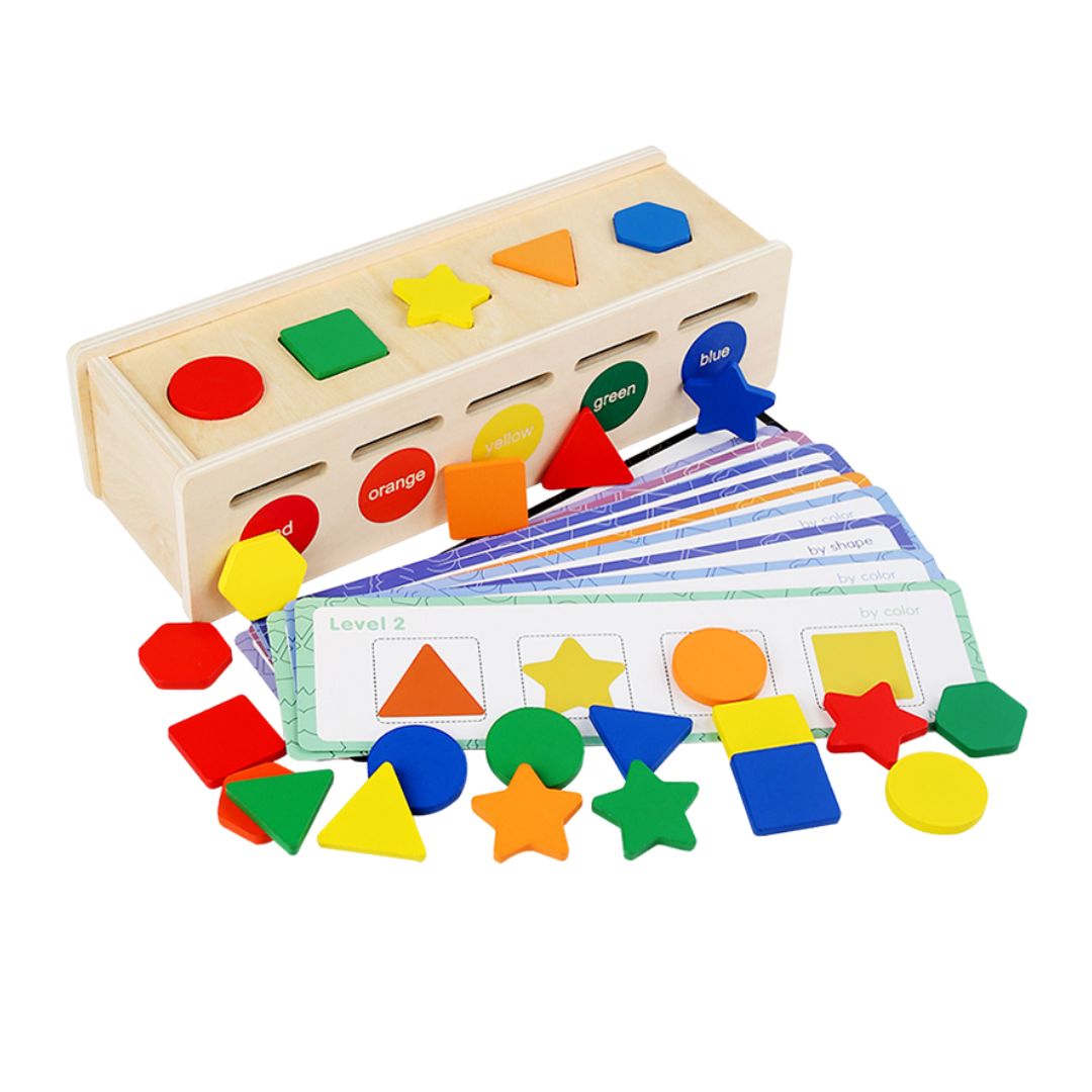 Cutia de sortare 2-în-1 le oferă celor mici o experiență de joacă interactivă și inteligentă, stimulându-le curiozitatea. Copiii învață prin joacă să sorteze formele fie după culoare, fie după formă, dezvoltând abilități esențiale pentru etapa timpurie de învățare.