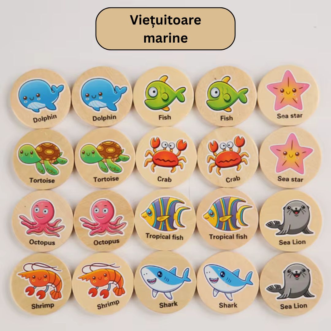Fiecare jucător, pe rând, extrage câte un cerc din lemn și încearcă să-i găsească perechea.