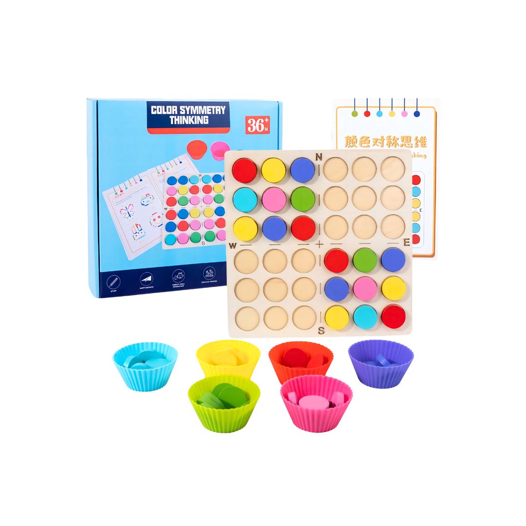 Un joc educativ Montessori din lemn, ideal pentru dezvoltarea gândirii logice, recunoașterea culorilor și exersarea simetriei. Prin intermediul modelelor incluse, copiii învață să reproducă tipare, să își dezvolte atenția și să își stimuleze imaginația într-un mod distractiv și interactiv.