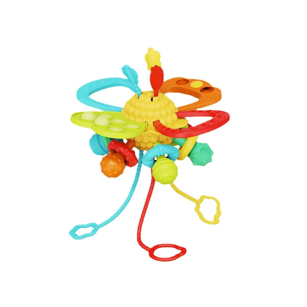 Jucărie senzorială și de dentiție - ideală pentru bebelușii de peste 18 luni, oferind alinare gingiilor sensibile și susținând dezvoltarea senzorială și motrică.