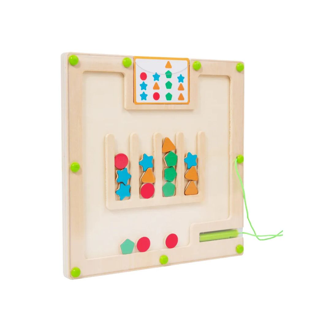 Jocul include un labirint magnetic în care copilul folosește un stilou magnetic pentru a muta formele colorate de diferite culori în locurile corespunzătoare, conform unui model. Jocul este recomandat copiilor cu vârsta de 3 ani+.