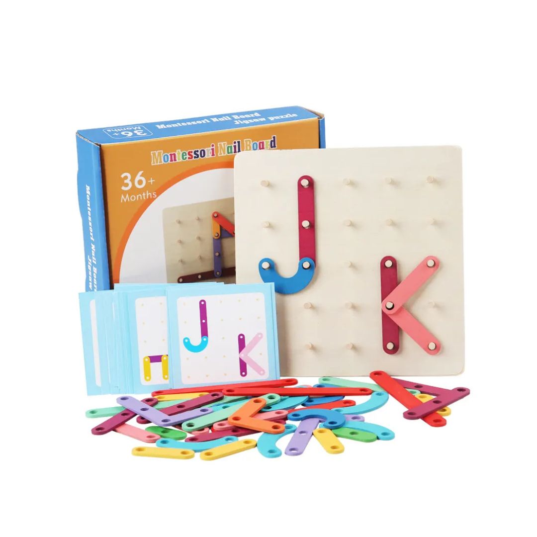 Placa Montessori cu piese colorate îi ajută pe copii să construiască litere, cifre și forme folosind modele predefinite sau propria imaginație. Un joc versatil, care stimulează învățarea prin joacă și oferă ore întregi de distracție educativă!